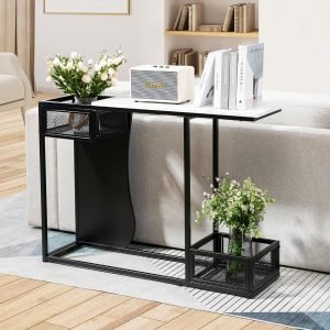 50% off VRULLR 43.3 inch Black Console Table, White Marble Pattern Entryway Table