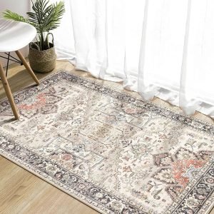 Machine Washable Floral Leaves Design Non-Slip Rubberback 2×5 Traditional Runner Rug